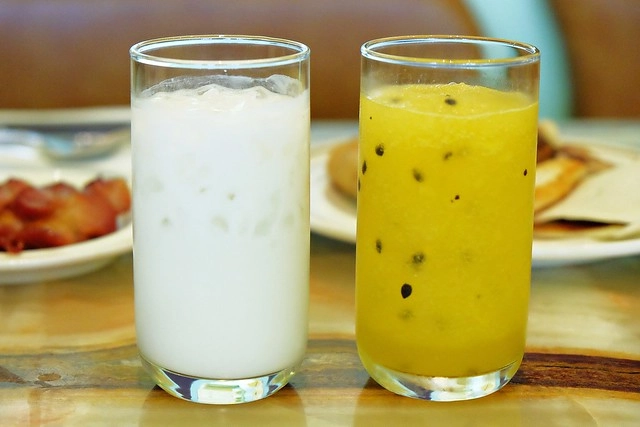 左邊是椰奶、右邊是百香果汁…椰奶的冰塊太多,所以喝到後面就一點味道都沒了,百香果汁的表現比較好一點!