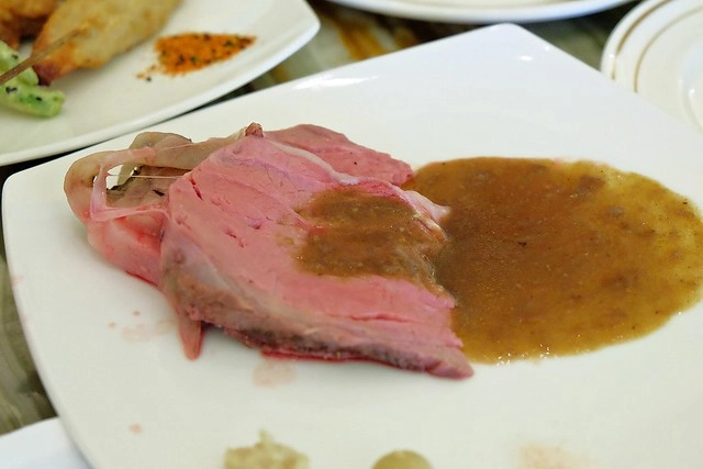 現切牛排,目測是5分熟,口感還不錯…