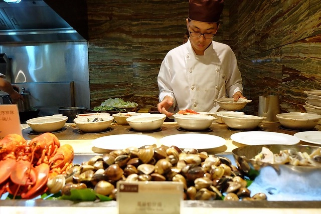 波士頓龍蝦看起來很肥美,如果整個用餐時間都一直排的話,推斷一個人可以吃到4~5碗…