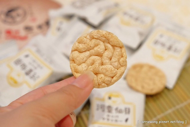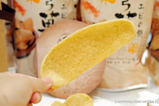 外型圓圓小巧的很可愛,厚度大概是0.5cm,吃起來酥酥脆脆帶點蝦子的香氣,沒有油膩感,鹹度也不會太高,算是比較天然的口味,沒有厚重的調味,但是會愈吃愈涮嘴…