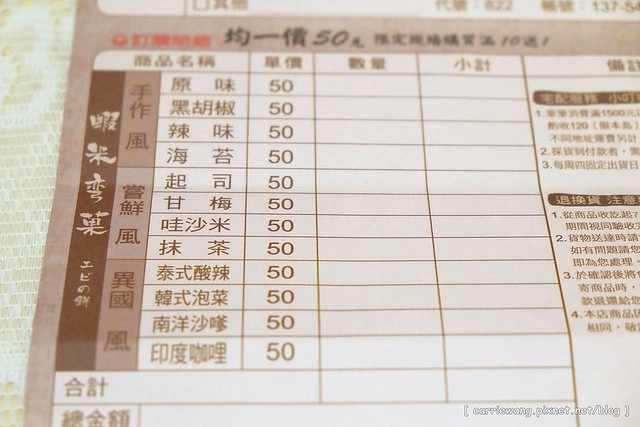 蝦米彎菓 – $50元,店家把12種口味一併都寄過來了,我們看到都傻眼了,不過我們居然在兩天內吃了5包才更令人傻眼!