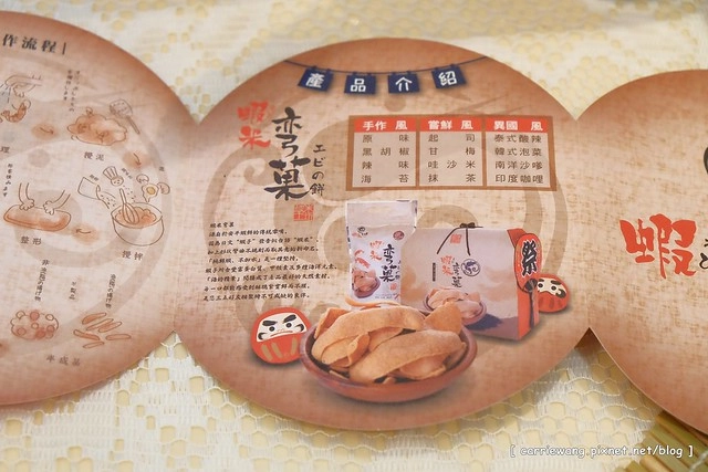 看DM上面的品牌故事寫到:原本《蝦米工坊》是在安平工業區裡的一間不起眼小店,剛開始經營卻有不錯的業蹟…不過有一天卻遇到供應商停止供貨,頓時門市營業營業陷入窘境…從那時候開始,《蝦米工坊》便決定要自已生產,把危機化成轉機,成就了今日…