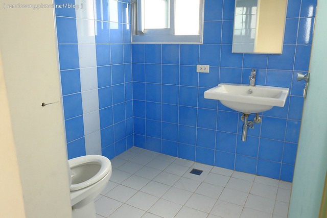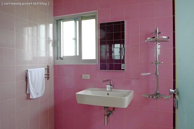 浴室是使用暖色系的磁磚,簡簡單單的…