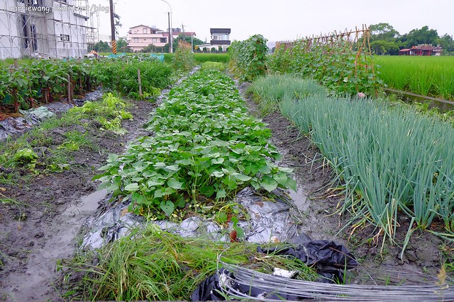 吃完早餐後,我們到屋外散散步,前面是一小片菜園…