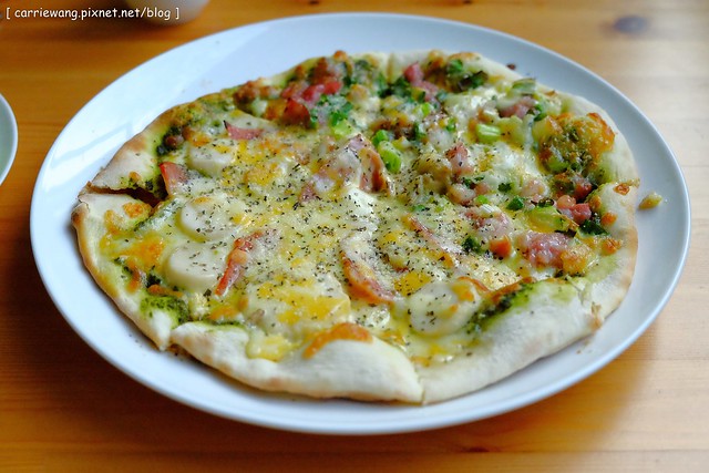 這披薩是薄片又略帶厚度的,外皮酥酥的,裡面軟Q,真的很好吃,我覺得它的水準不會輸給外面的披薩專賣店呢!