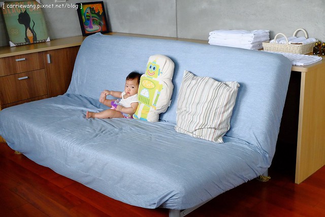 一旁是一個小小客廳區,凱文正在餵食小櫻桃中…(真是好爸爸,給姆指!
