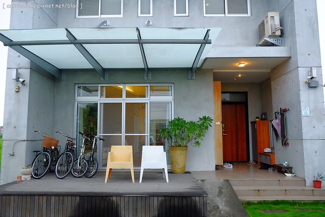 門口有停放腳踏車,如果天氣好的話,可以騎著四處逛逛…(可惜這天天氣不好!