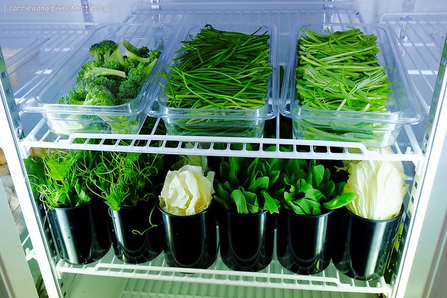 冰箱裡的蔬菜都是像這樣一桶一桶的,要的話直接整桶拿取就好,蔬菜的部份都洗的很乾淨,害我會不小心吃很多,然後忘了吃肉這樣…(不不不…怎麼可以讓店家的詭計得逞…