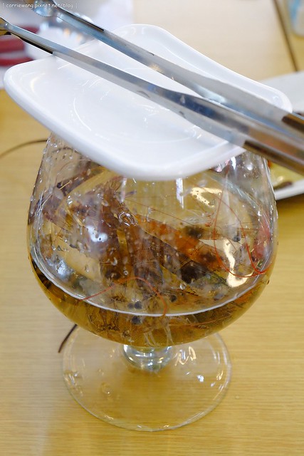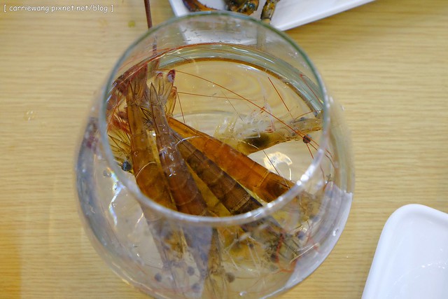活蝦 – 這個送上桌的時候也是活跳跳的,所以杯口還用盤子蓋住,真的很怕蝦子會自已跳出來提前自殺…