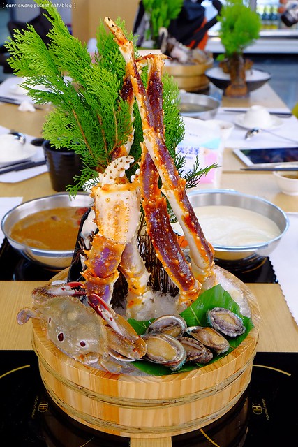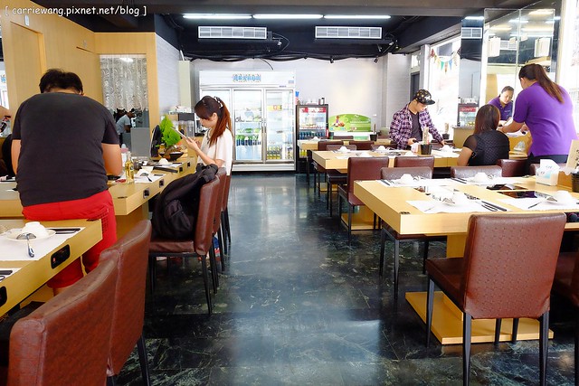 我本來想說,既然是帝王蟹火鍋吃到飽的餐廳,那內裝鐵定很豪華吧?沒想到到了店裡發現它比較像一般的涮涮鍋店…欸…好啦!這樣感覺比較有親和力啦!