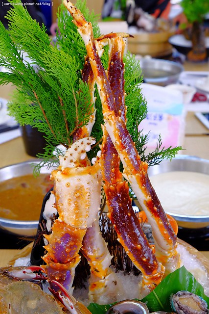 帝王蟹給一整隻的,店家讓我們拍完照之後才拿進去廚房肢解…