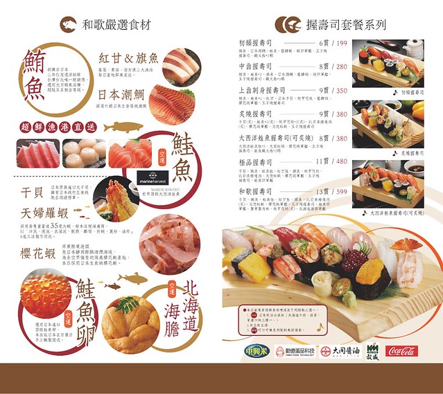 和歌握壽司 – $599元,會點這道是因為~它看起來很澎派,有甄姐喜歡吃的生魚和我愛吃的炙燒,還有凱文愛吃的軍艦壽司都有,各取所需呀!