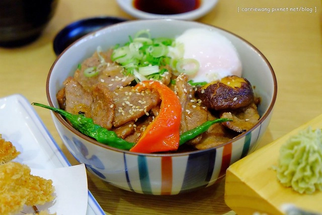 這道牛肉丼應該是將牛肉烤過之後再淋上醬汁,上面有白芝麻增加香氣,牛肉本身有入味而且軟嫩不柴,算是比較重口味的…