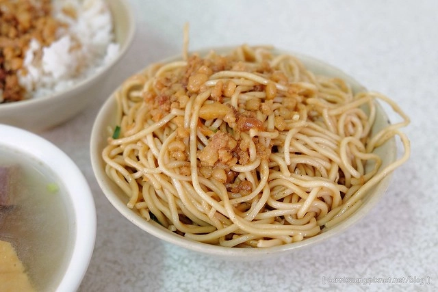 以肉燥飯來說,他們家的算是肥肉比例比較少的,而且肉塊切的比較細,只是米飯對我們而言稍微偏軟了一些。
