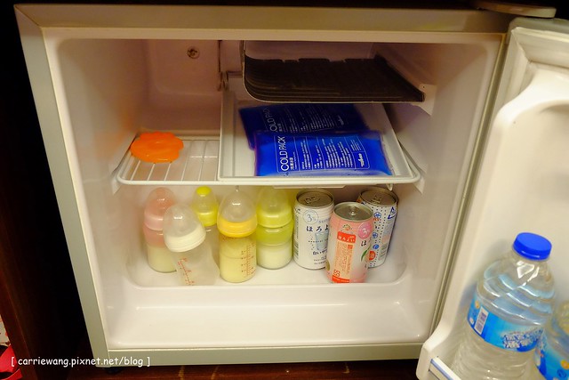 冰箱裡有附兩瓶礦泉水,結果我們把整個冰箱塞滿了啤酒和母奶…