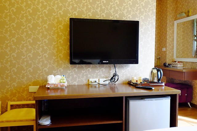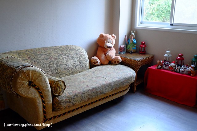 另外有一個小區域是化妝間,全棟的wifi都是免費的,住宿期間的晚上,凱文都窩在床上看電視,我則是躲在這兒上網打文章…(山上晚上沒地方去嘛!