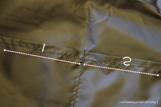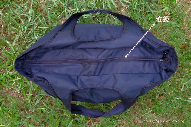 車縫的地方很堅固,而且揹袋的地方採上窄下寬的設計,這樣很貼心耶!因為揹起來的時候上方的揹帶部份才不會擠壓到…