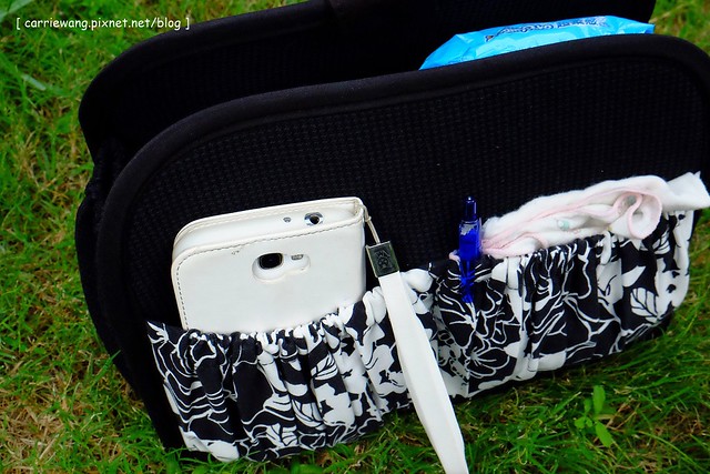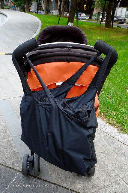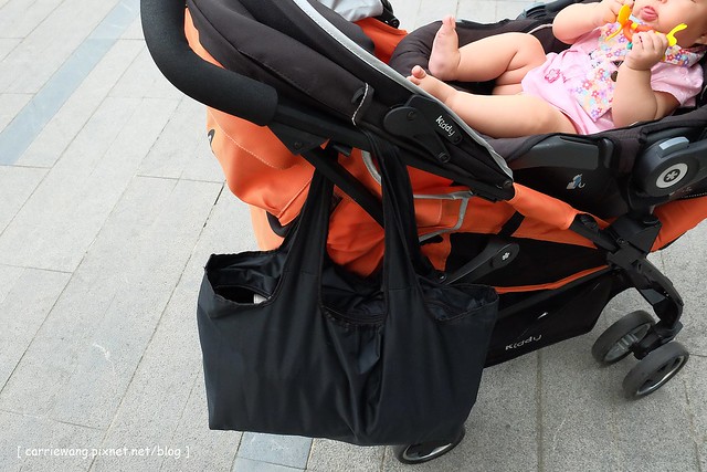 外出的時候如果有推推車,我們就把媽媽包掛在推車上…