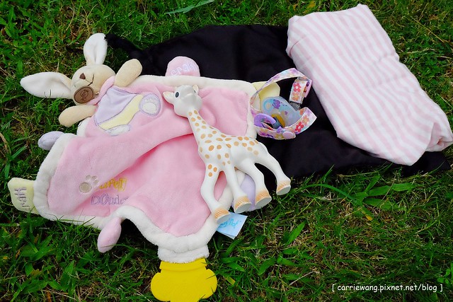 玩具…其實就是她的固齒器和奶嘴…(話說我最近買固齒器買上癮了,每次到嬰兒用品店一定會敗1~2個…)