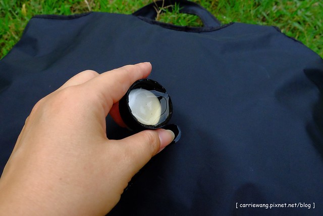 現在要做防潑水測試囉!用瓶蓋裝一點點無糖綠,給它倒下去…【育兒日記分享】Una超輕量媽媽包+Una收納包中包。貼心分隔、超大容量、材質輕盈、防潑水,媽媽出門的好幫手 @飛天璇的口袋