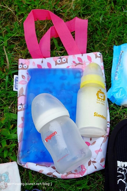 這一包是母乳,因為要方便隔水加熱,所以我們是用玻璃瓶裝,但是小櫻桃又只喝貝親的母乳實感廣口瓶,所以熱完之後還要倒過來另一個空奶瓶給她喝…(真龜毛…【育兒日記分享】Una超輕量媽媽包+Una收納包中包。貼心分隔、超大容量、材質輕盈、防潑水,媽媽出門的好幫手 @飛天璇的口袋)