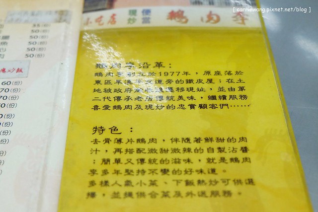Menu上寫說,《鵝肉李》創立於西元1977年,原本是在旱溪旁邊的鐵皮屋,因為土地徵收的關係,所以搬到了現址,已經傳承到第二代囉!