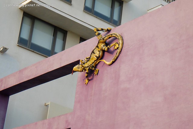 牆上有一隻很大的…蜥蜴耶!(這下又成了非洲了…