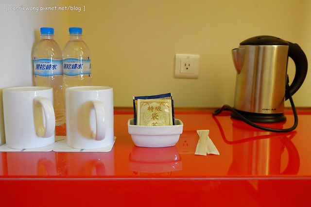 每一間房間都會附礦泉水、茶包和熱水壺…