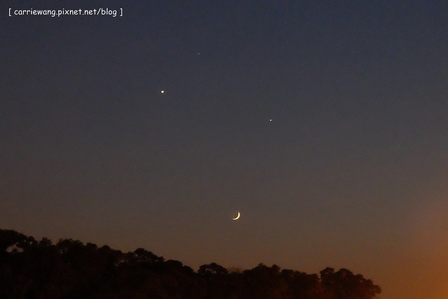 我們本來是要到門口拍飯店的夜景的,卻不經意補捉到這個很像笑臉的星星和月亮…