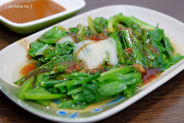 他們家的燙青菜也是加了醬汁和蒜泥,還有肉燥,所以也是偏重口味的哦!