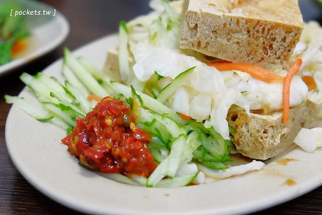 豆腐大小適中,加上醬汁和蒜泥,口味偏重,豆腐吃起來很酥脆,臭味很足…