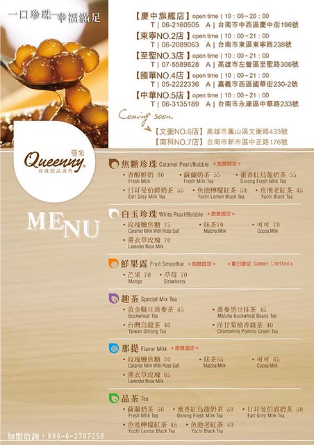 焦糖珍珠、白玉珍珠、鮮果露、趣茶、那提和品茶…