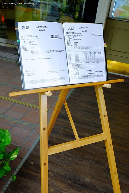門口有一個立牌,上面附了產品的SGS的農藥各項檢驗合格報告,在食安問題層出不斷的現今社會,有檢驗總是令人安心點…