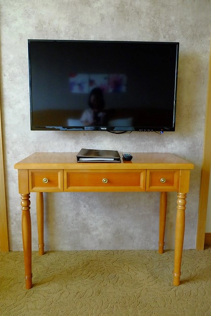 電視是平面的哦!現在只要是新的飯店,幾乎都是平面電視了…
