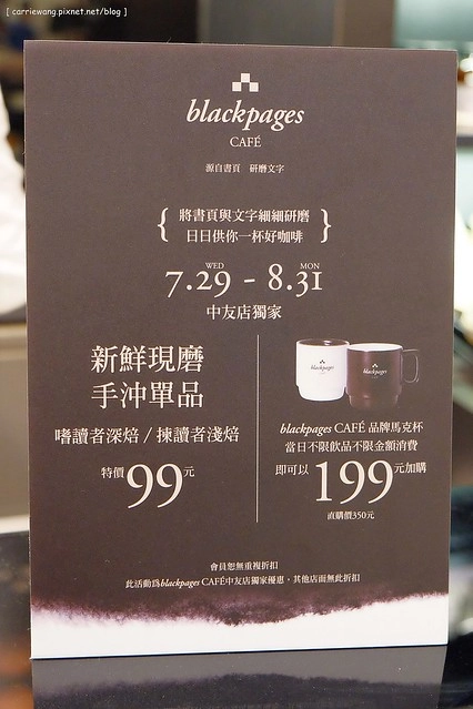 最近很難得有新開的餐廳我會想去衝的…(沒辦法,帶小孩出門很麻煩,所以就愈來愈懶了…),這天原本是要到中友百貨買悶燒罐的,得知誠品書店的《Blackpages Café》首日開幕,就跟來湊熱鬧了!