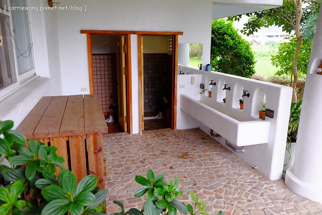 廁所就在外面,也就是在餐廳的後方,進出屋子都要換地板鞋哦!