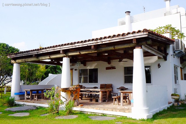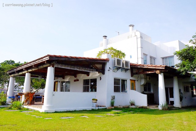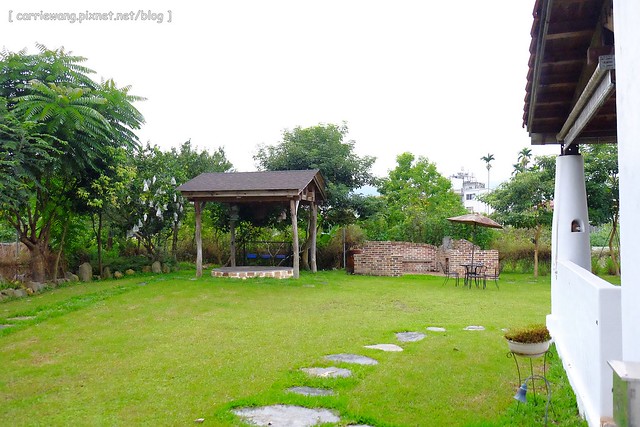 《微笑58》民宿前方有一大片草皮,屋子右邊是一個車庫,凱文對著我說:「是我的車庫耶!去幫我把車庫的門打開吧!」(