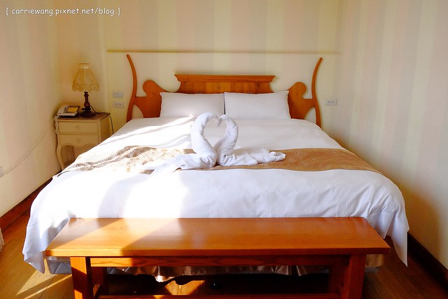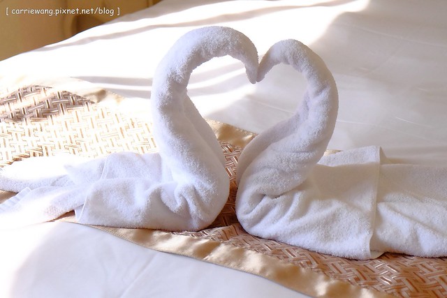 雙人房就是浪漫,床上還有毛巾折成的天鵝…噗~好像是來渡蜜月一樣!