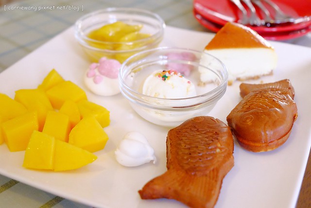 有鯛魚燒、棉花糖、新鮮芒果、冰淇淋、乳酪蛋糕和埔里特產的阿娜娜水果…