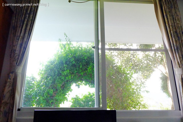 從窗戶望出去,就可以看到外面的小陽台,遠方藍天白雲和綠山相映,呼…真的有遠離塵囂、渡假的感覺了!