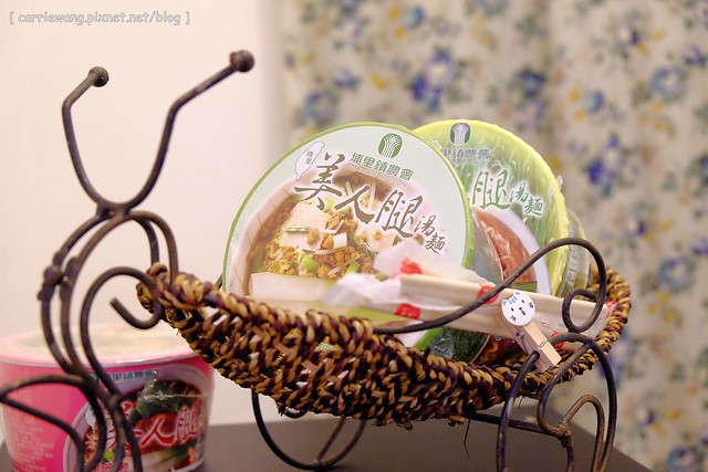 外頭有飲水機,飲水機上面有埔里農會特產的美人腿泡麵(美人腿=筊白筍),肚子餓了的話可以自行取用,很貼心吧?