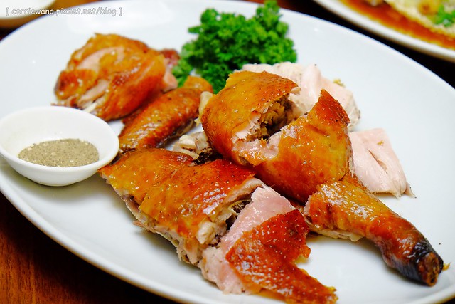 黃金脆皮雞 – $420元,外皮很酥脆帶有焦香,肉質有的部位吃起來比較乾柴一點,有的部位就還滿軟嫩的…