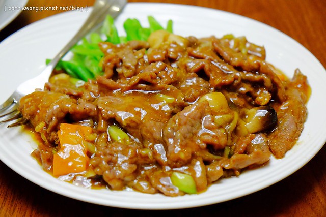 鮮菇芥蘭牛肉 – $280元,這一道也是超下飯的,但是單吃可能會覺得有點鹹,配白飯會好一點…牛肉快炒過後有再勾芡,看起來色澤很油亮油亮的…