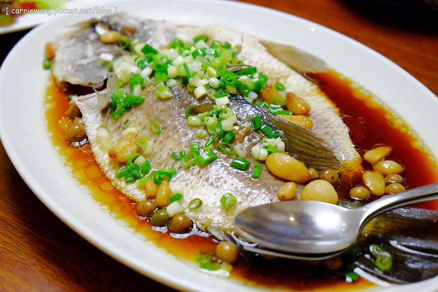 蒜子蒸鮮魚 – $560元,這道應該是用蒜頭和破布子下去蒸的,魚肉沒有腥味,軟嫩細緻,而且蒜頭也可以直接吃耶!鬆軟又沒腥辣味…