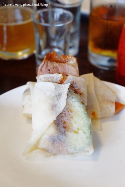 裡面就是鴨肉加上小黃瓜還有醬料,味道比較重一點,也是很有層次的一道…