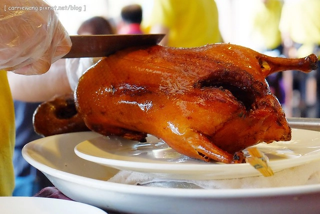 蹬蹬蹬蹬…烤鴨推出來囉!都是師傅現場片的哦!