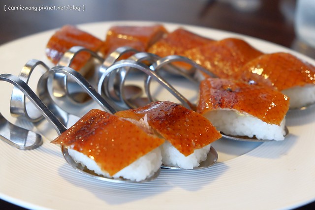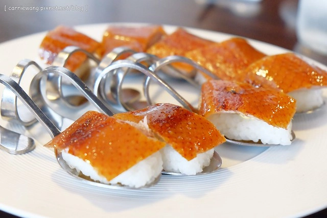 之前去吃過蘭城晶英酒店類似於首圖的烤鴨握壽司
