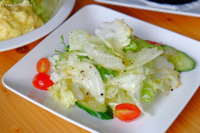 沙拉 – 視覺上來說也稍嫌單調了些,不過因為蔬菜本身都很新鮮,而且橄欖油醋醬有開胃的效果,所以口感還不錯…