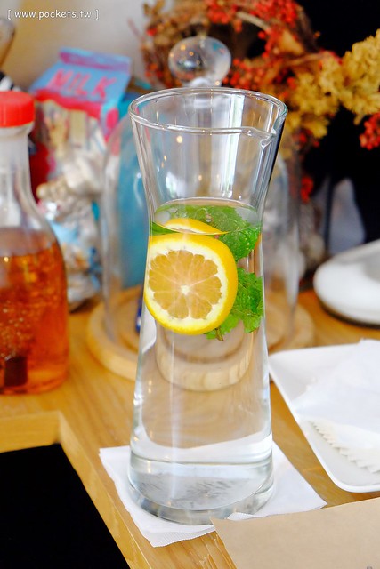 開水裡面除了薄荷葉之外,還有放橙片,所以增添了一種清新甘甜的感覺…