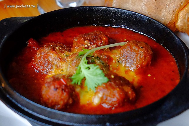 牛肉丸裡有胸腹肉,香料,巴西里,cayenne pepper…吃起來軟嫩juicy有入味,醬汁有點酸酸甜甜的,這個可以直接吃,也可以把popover剝下一塊一塊搭配沾附著吃…